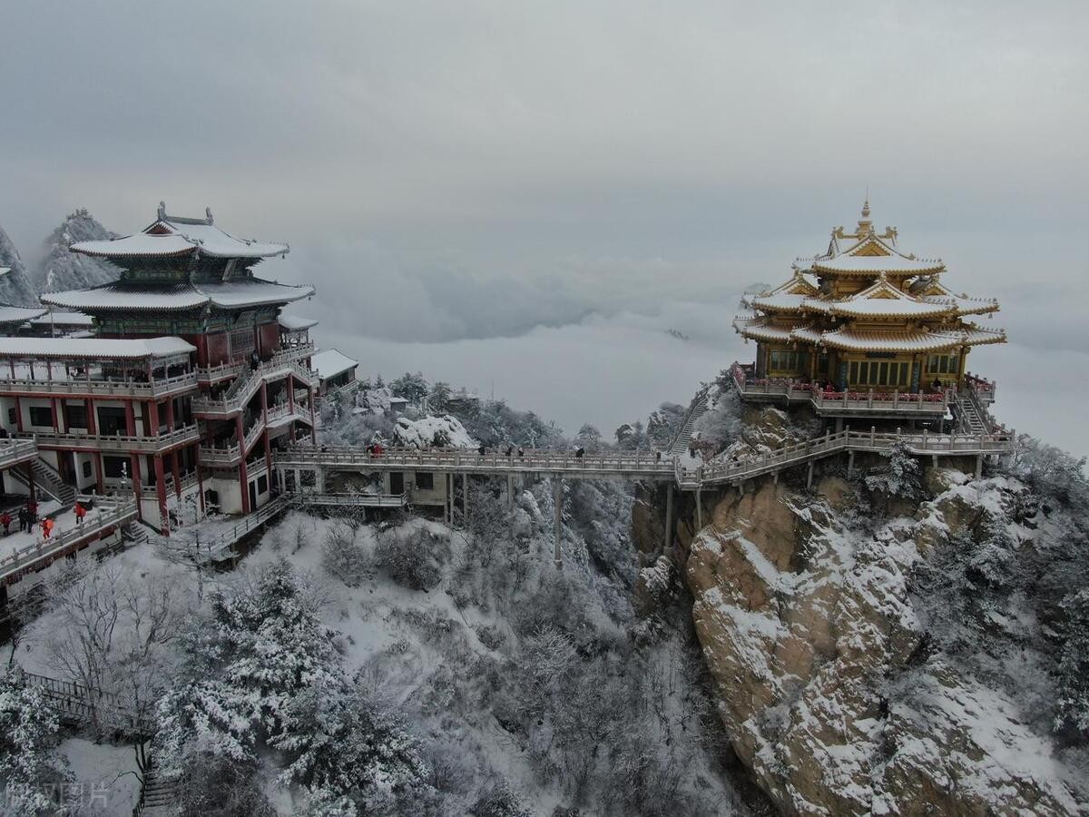 冬日里的老君山一步一景,只有这个季节,才能看见老君山的雪景雾凇,也正是这个原因,让老君山彻彻底底的红遍了网络。但是,不是每个人都有毅力穿过那层层迷雾,欣赏到那云层之前的金碧辉煌。老君山内最为震撼人心的还要数老君山山顶的景色,每年的冬季只要有能力登上山顶,就会遇见独一无二的自然风光。其中最为突出的便是依托山顶而建的金顶道观群,雪中的金顶道观群,似是天宫跌入了凡尘,云雾缭绕,是真正意义上的奇观!