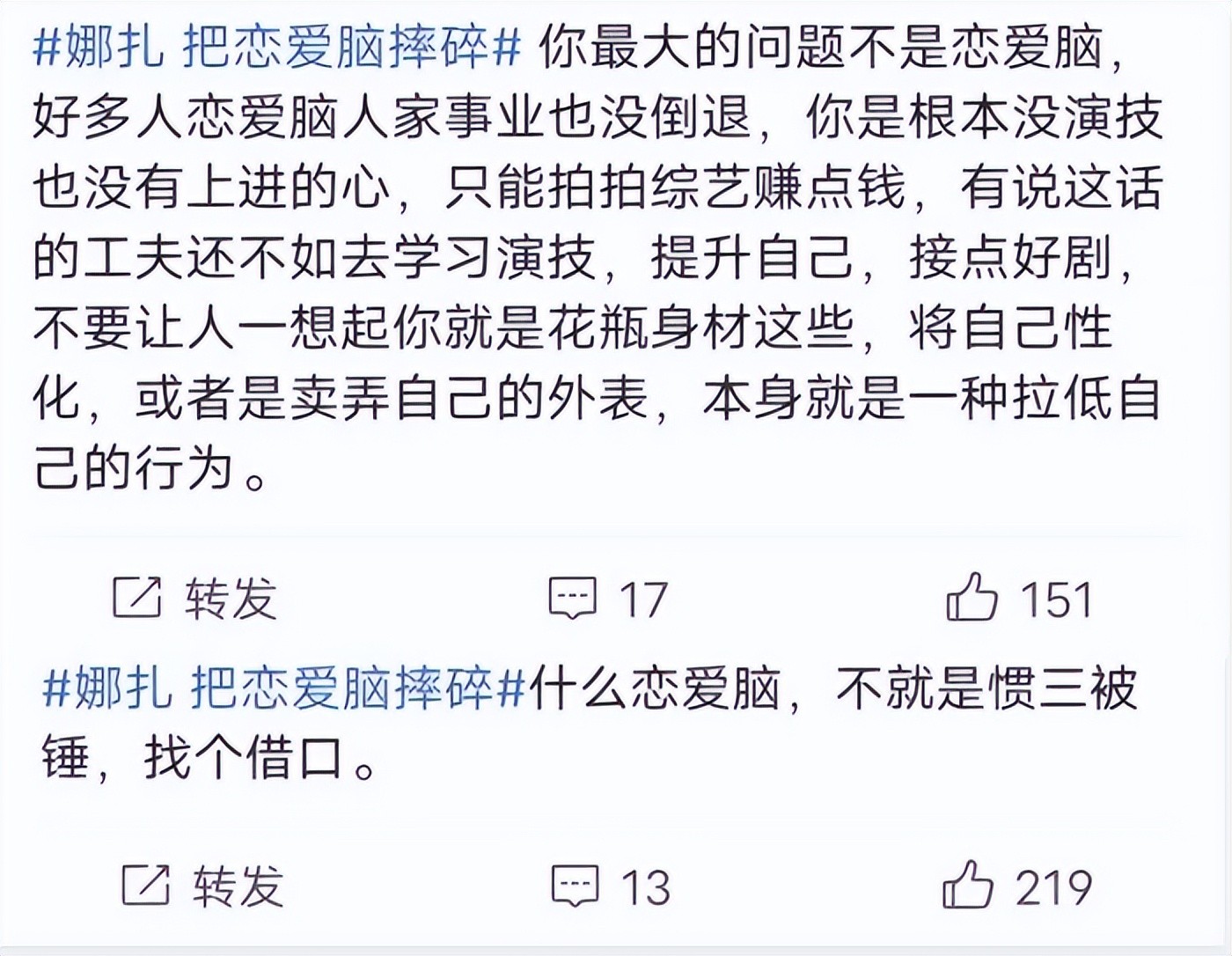 看到这里,或许你们已然明白,为什么娜扎急于撕掉身上“恋爱脑和小三”的标签,归根结底,是她仍然想吃娱乐圈这碗饭。