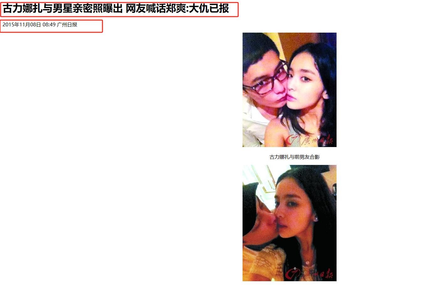 古力娜扎与男星亲密照曝出 网友喊话郑爽:大仇已报 2015年11月08日 08:49 广州日报
