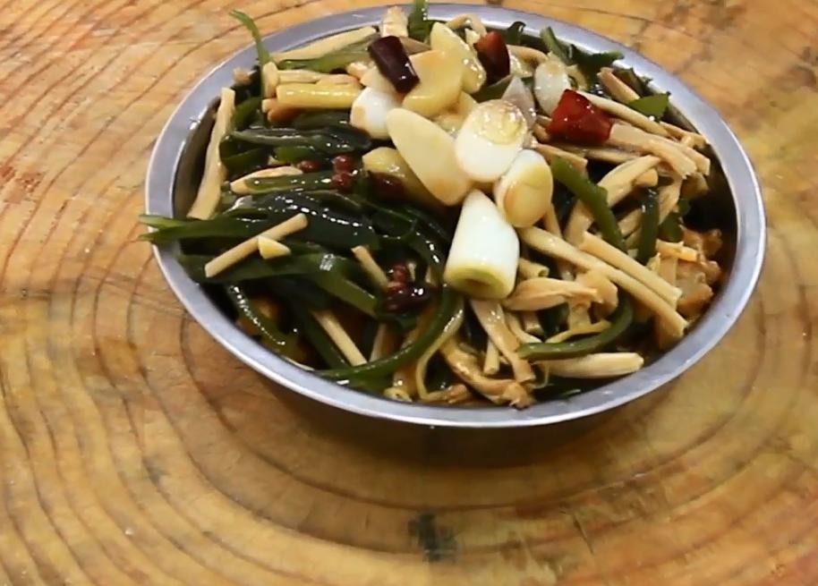 辅料:黄花菜(提前泡发),海底(提前浸泡)
