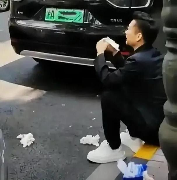 原本就十分愤怒的他,在瞅见满地散落的卫生纸,以及坐在路边的“小三”时,他的怒气越来越大。