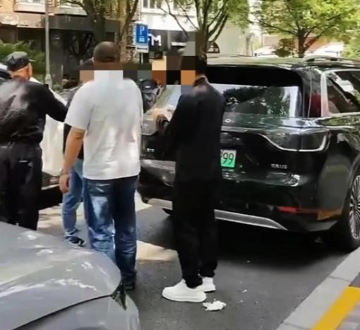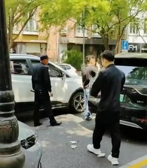 5月24日,上海某小区外,一名黑衣服男子怒气冲冲地走向一辆SUV,拼命拍打着窗户。
