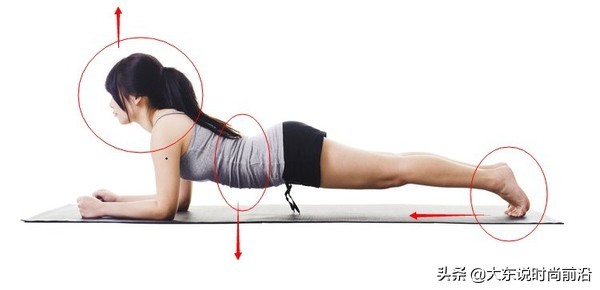 1、肩、腰、踝关节在同一直线上。2、大臂垂直于地面。 3、颈部保持自然放松。