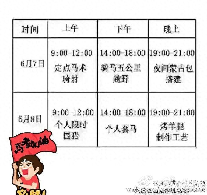 8号上午,限时围猎,会有武警围出一个大围场,这个科目在内蒙有几个考场,呼伦贝尔草原考场(呼伦贝尔,兴安盟考生),科尔沁草原考场(通辽考生),乌拉盖草原考场(锡林郭勒考生),坝上草原考场(赤峰考生),希拉穆仁草原考场(呼和浩特,包头,乌兰察布考生),乌海和阿拉善盟的同学比较特别,他们没有草原围场,在沙漠里打猎,所以他们加分会比较多。