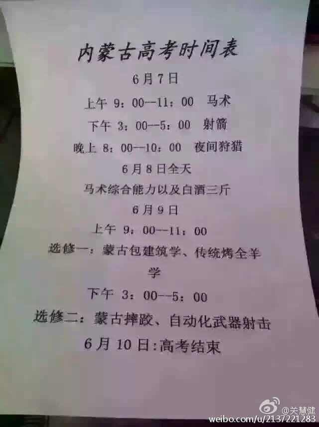 但是现在网络这么发达,我以为,虽然你们关内人对内蒙了解不多,但是我们高考考什么应该还是知道的吧?没想到2017年了你们还在怀疑我们是不是骑马射箭,简直就是naive!