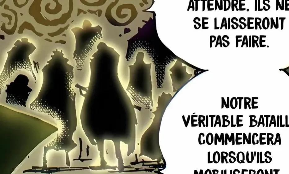 有几个想抢功不知死活的海贼冲向盖林格圣 盖林格圣只是挥挥剑 他们就全倒下了 然后向着洛克斯一记斩击过去 但被一个巨大的女人挡住了 此人正是日后的四皇大妈