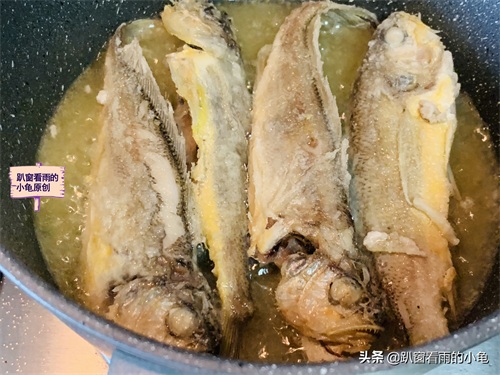 2:在慢炖的过程中,可以时不时地用铲子将汤汁淋在小黄鱼的表面,让露在汤汁外面的小黄鱼也更加入味。]