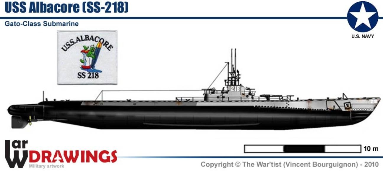 美军一艘名为“大青花鱼”(USS Albacore SS-218)的潜艇早已盯上了大凤,他们对这艘明显不一样的日本航母非常感兴趣。