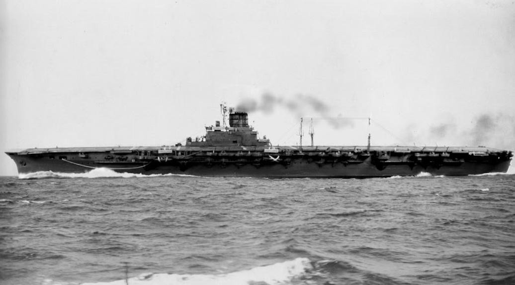 一架彗星舰爆飞出了编队,众目睽睽之下,它加速横穿到攻击群的前方,追上了鱼雷的航迹,然后带着250公斤的炸弹一头扎了下去……