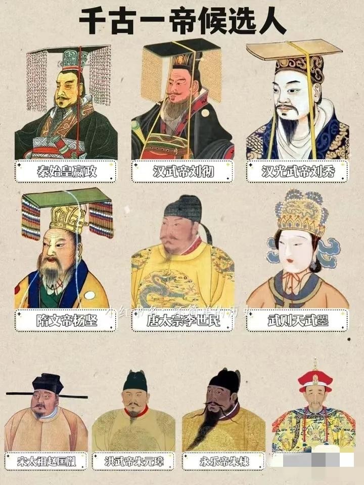 需要注意的是,以上排名并不是绝对的,不同的历史学家和人们可能有不同的看法和评价。每位皇帝都有其独特的才能和贡献,对中国历史产生了重要影响,无论他们是否被称为"千古一帝"。