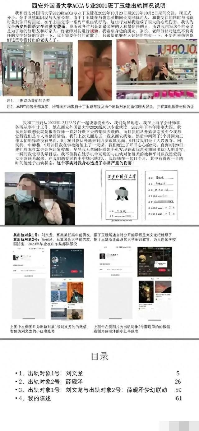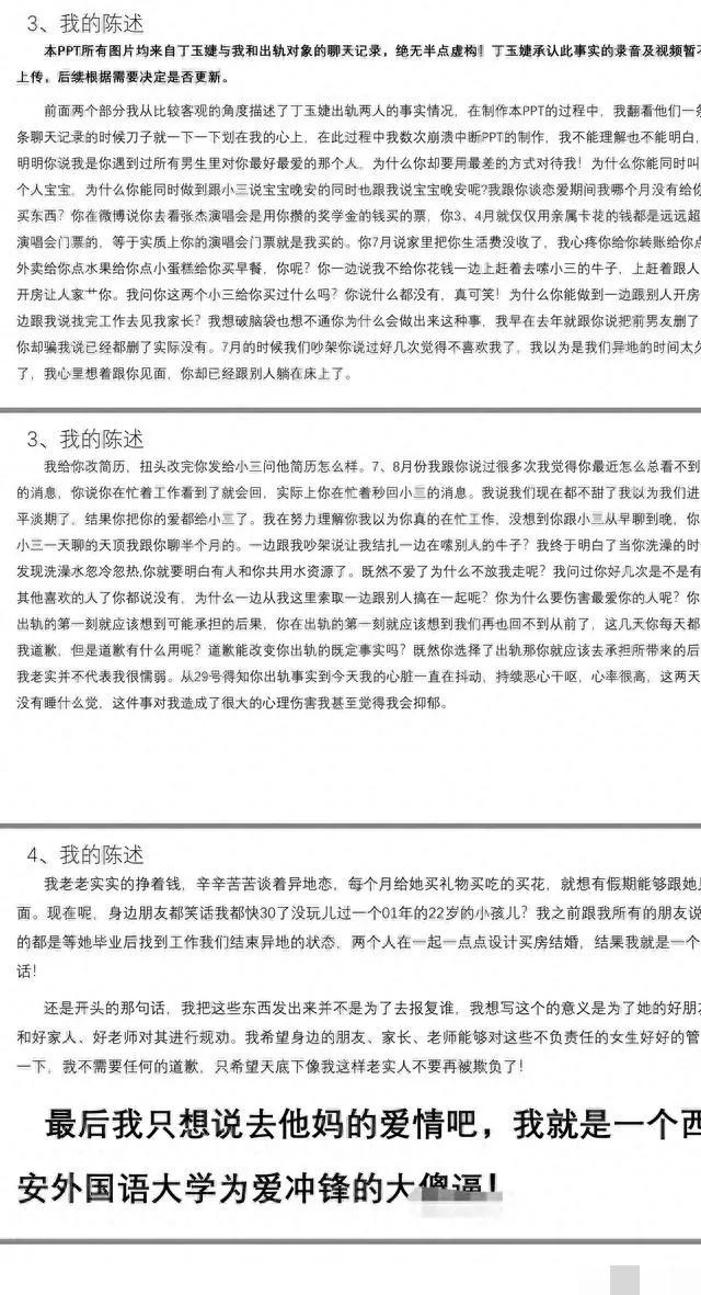 西安外国语大学某女生“出轨”三男,被男友63页ppt曝光聊天记录