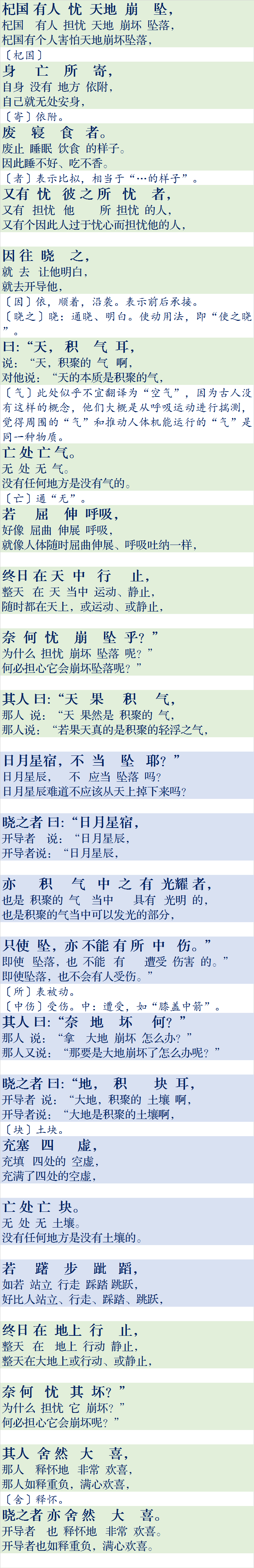 杞人忧天的翻译简单版(初中古文简单翻译:杞人忧天)