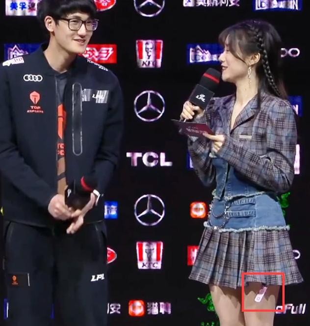 LPL女主持赛后采访时,短裙一直挂着不明物体,网友:C字创可贴?