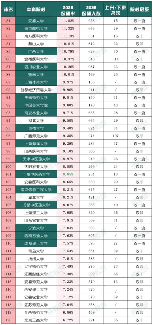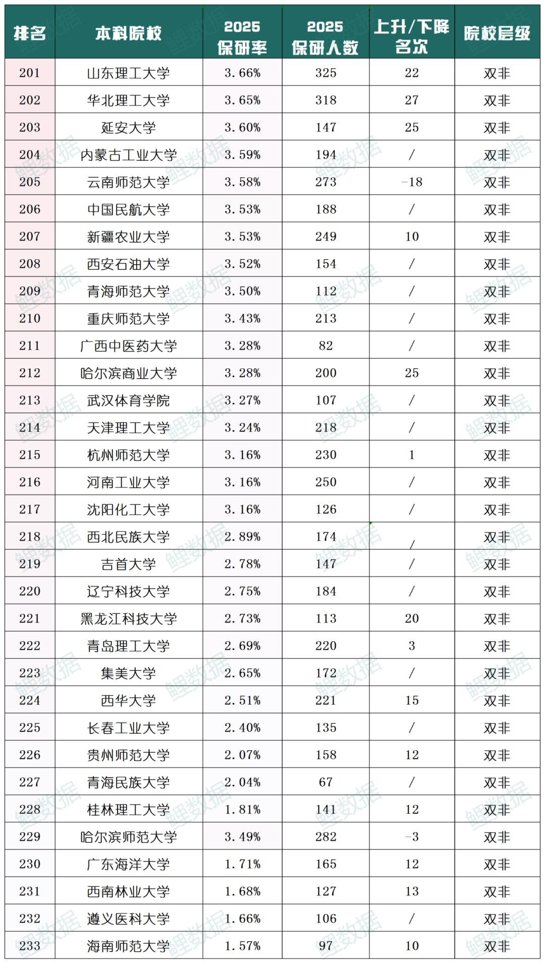 6. “双非”高校中南方医科大学、燕山大学的保研率也很高,不过首都医科大学的保研数据估计也很高,并没有在表格中;