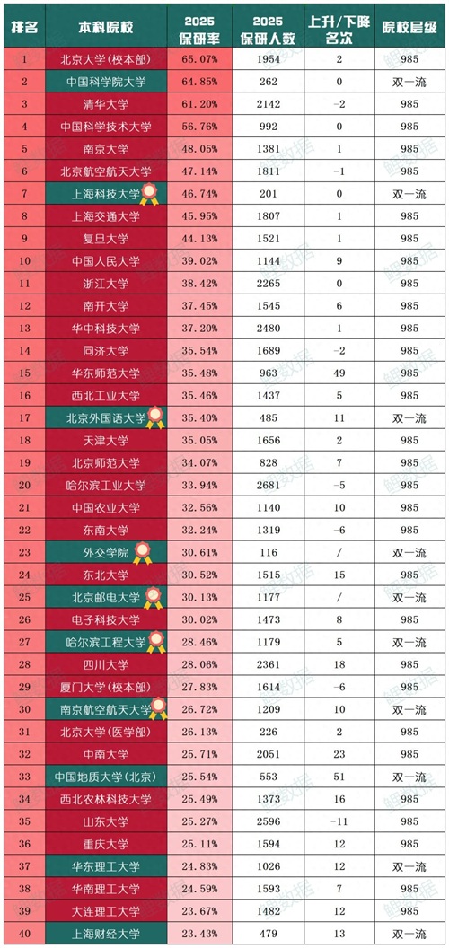 3. 上海科技大学、北京外国语大学、外交学院、北京邮电大学、哈尔滨工程大学和南京航空航天大学都在前30,比很多985高校的保研率高。