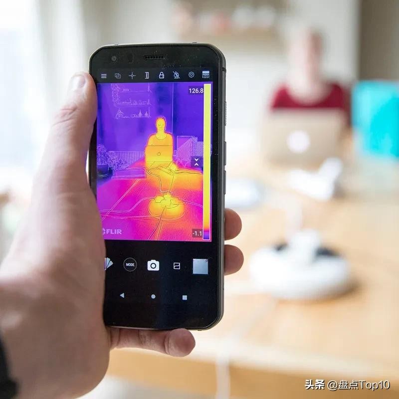 这款手机最大的亮点是热成像摄像头,摄像头模块中使用的 FLIR Lepton 技术,可以在 - 20°C 至 400°C 的范围内,识别热点和冷区的分辨率更高、更清晰。