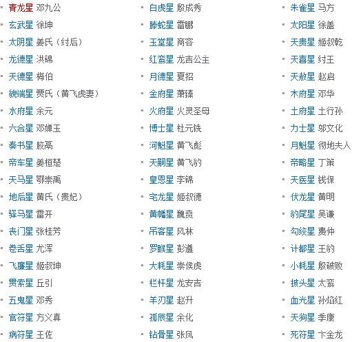 北斗星官为黄天祥、比干、窦荣、韩升、韩变、苏全忠、鄂顺、郭宸、董忠。