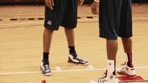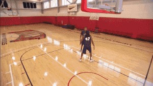二、抢篮板脚步:除了卡位,抢篮板的脚步也十分重要,在挡住对方内线时,重心压低双手张开,此时用背部臀部感觉对方的位置,然后做螃蟹步平移,可以有效阻挡对方抢位。