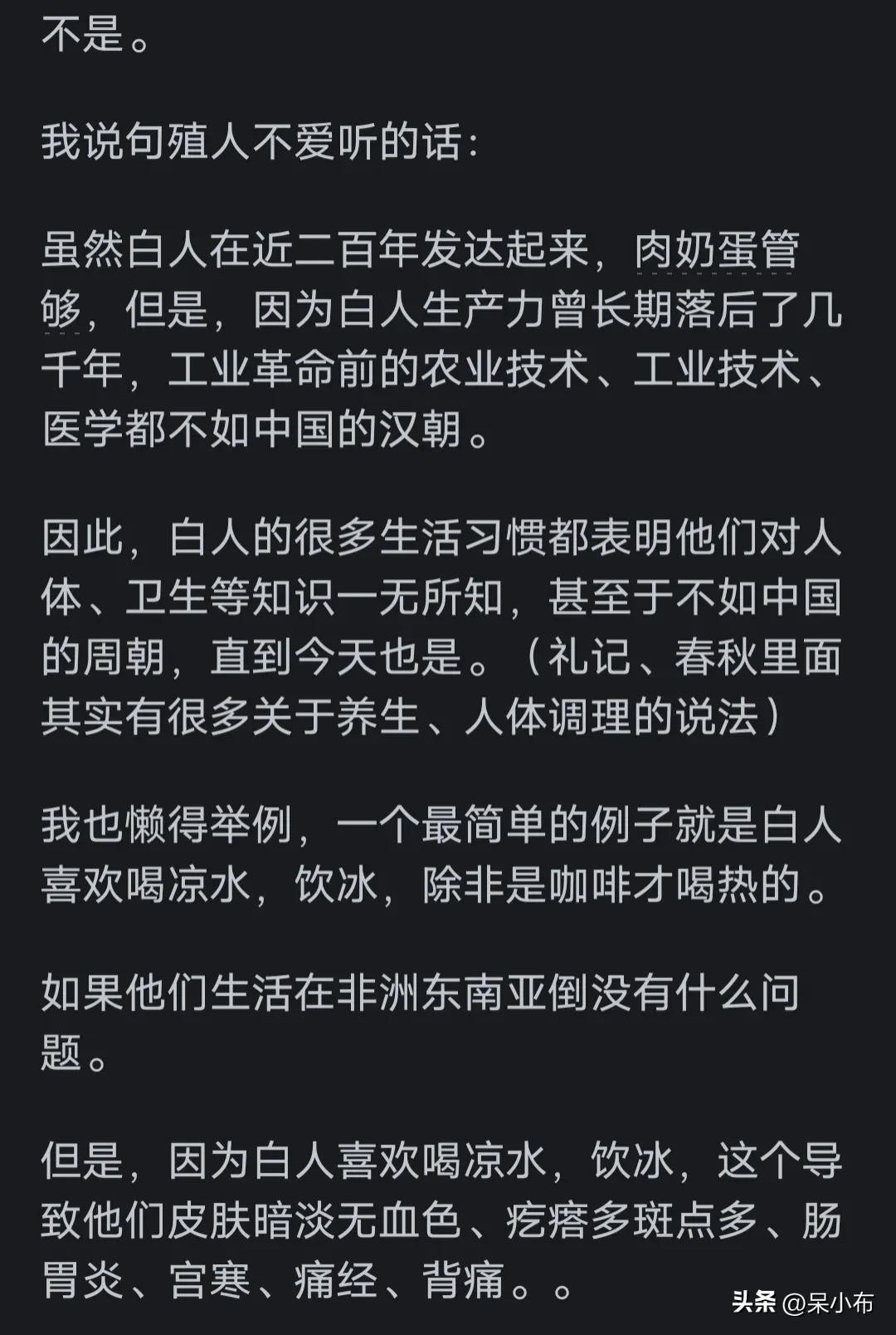 好家伙 白人皮肤白是因为喝凉水喝的 真行啊
