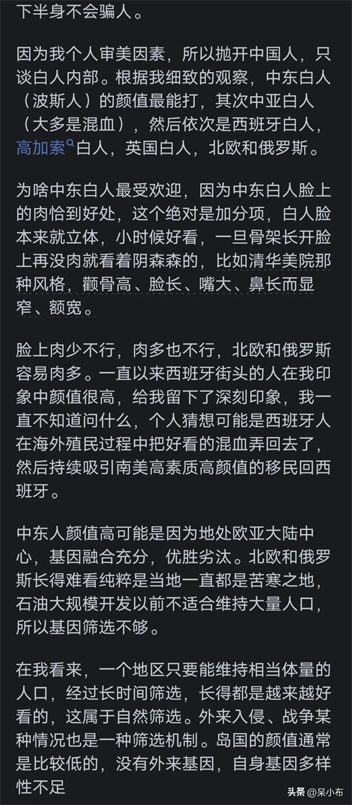 普通人都是丑的。白人的是雀斑、多毛、狐臭