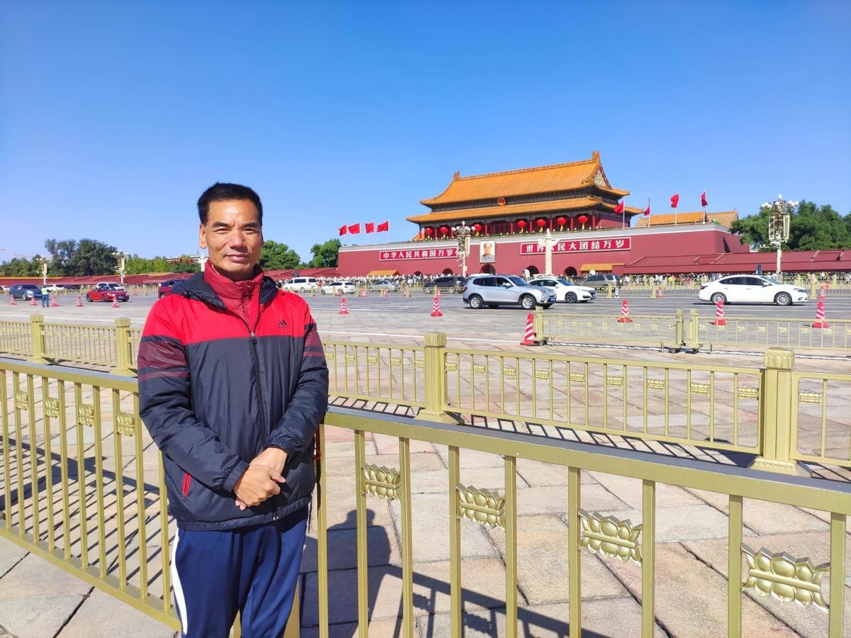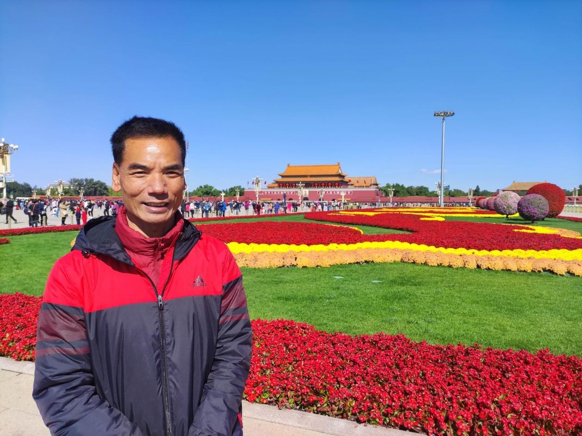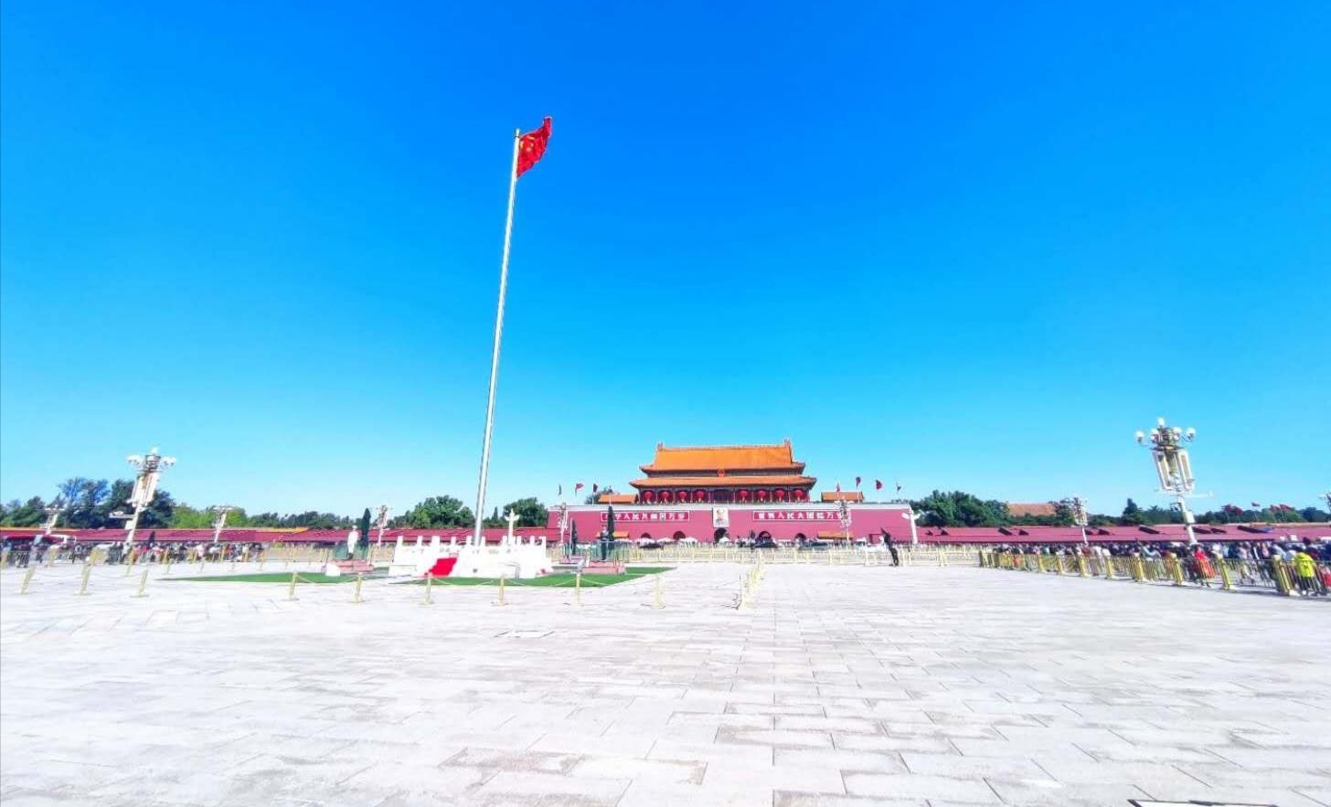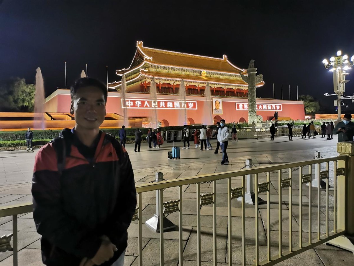 在天安门城楼上,随国旗的冉冉升起,那一刻,热血沸腾,几十年后至今还暖动。