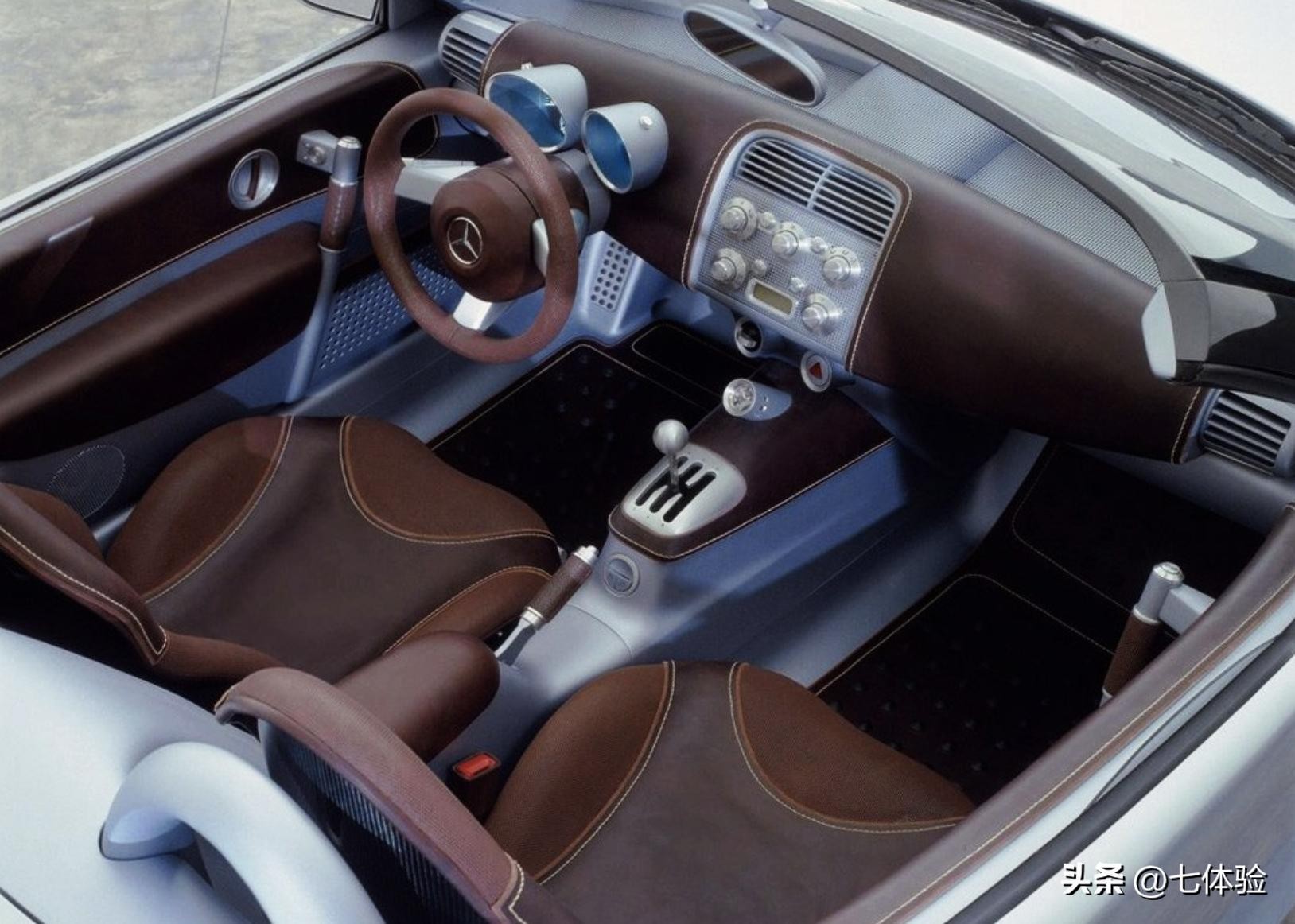 奔驰品牌在2000年推出了其入门级敞篷概念跑车SLA,该车借鉴了前辈SLR和SLK上长鼻子的设计元素,该元素来自F1赛车,当年旨在唤醒成绩不见起色的迈凯伦F1车队。内饰方面,SLA概念车布局非常简洁,棕色皮质材料的加入为车内提升了不少档次感。