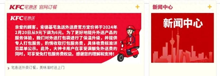 肯德基宅急送外送费官方定价即日起下调为6元,你会吃吗?