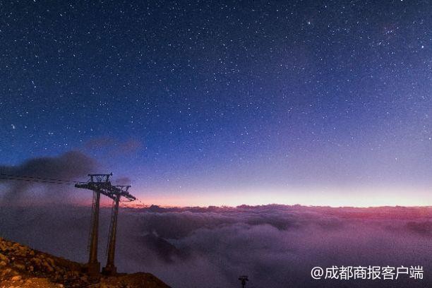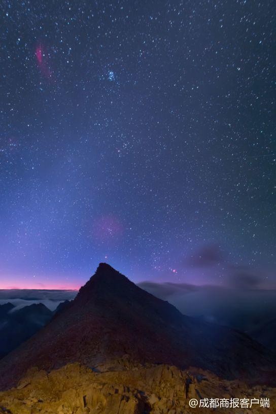 黎明前的达古冰山之巅,四川省天文科普学会曾阳摄于达古冰山景区观景台