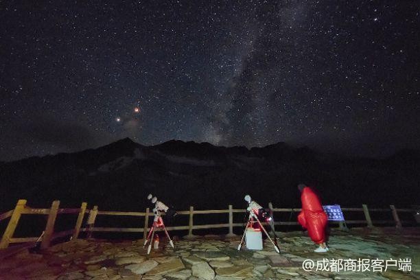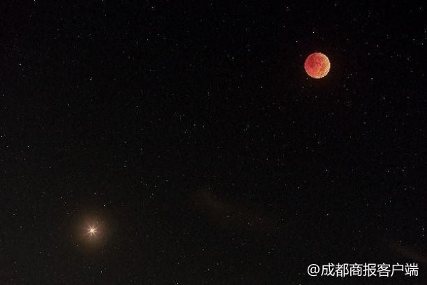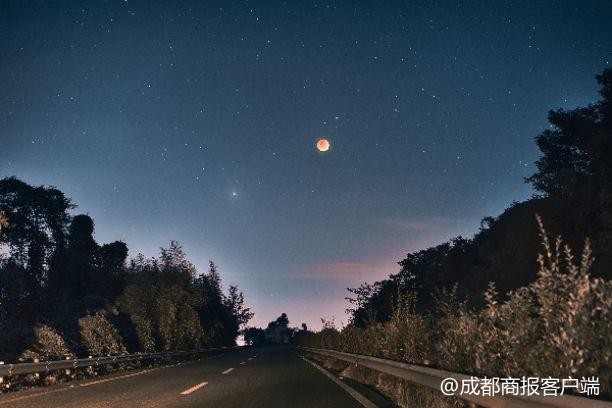 28日晚,“火星大冲”和月全食一同出现在天空。理论上,四川可观赏到本次月食的全食阶段,无奈天公不作美,“盆地仅川东地区南充、广元、遂宁等地有概率可以看到。”四川省天文科普学会副会长曾阳和学会的小伙伴们选择去往阿坝藏族羌族自治州黑水县达古冰山,登上海拔4860米的观景台观看;而学会的第二分队则去往了重庆市,“追逐”火星与红月。