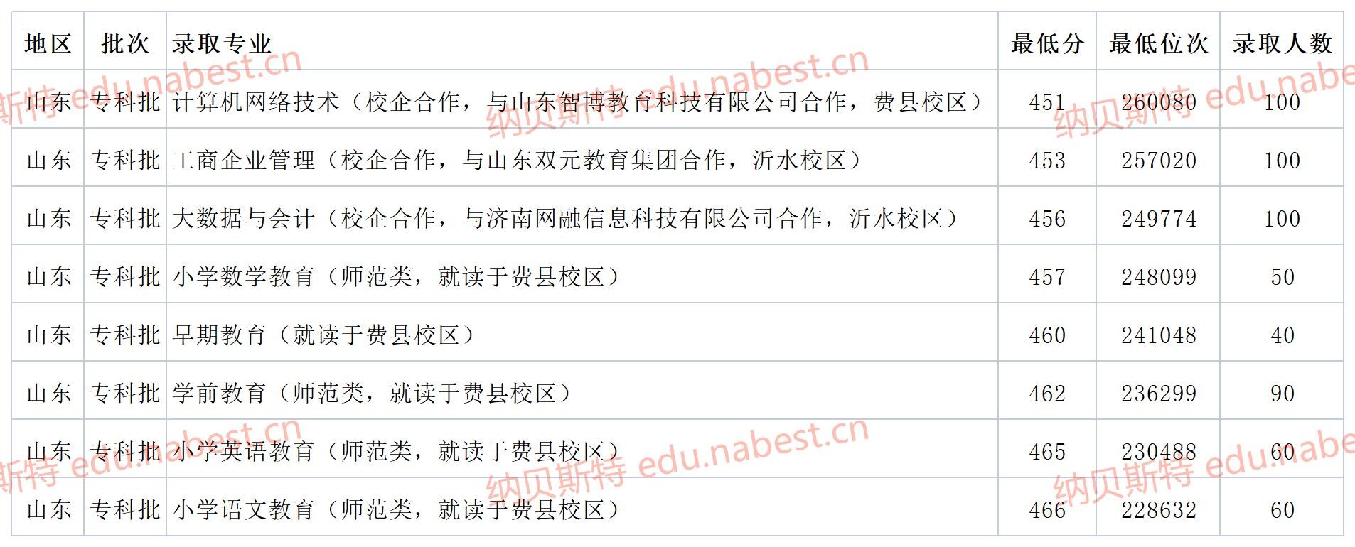 临沂大学专科专业录取分数线相对较高,均在450分以上,更是有4个专业最低分数线超过了460分,而这个成绩已经能报考民办本科大学了。当然考生既然选择了临沂大学的专科专业,肯定有自己的考量。临沂大学专科专业有两个校企合作方向就读在临沂本部,其他几个专业均在费县校区。