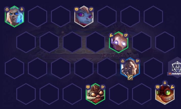 这套阵容不用上9人口,在8人口找到全两星,然后追一张三星牌。如果来了“希尔克”,不一定要换下“卡萨丁”,打不过了可以换上博一把。
