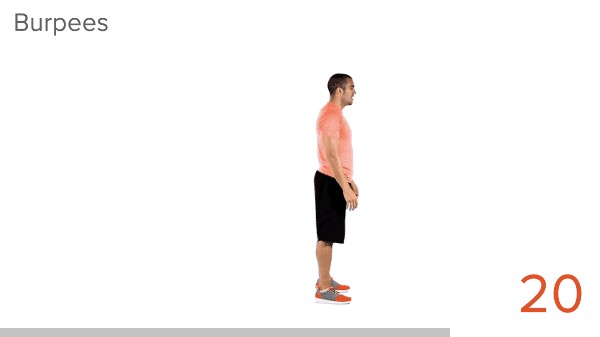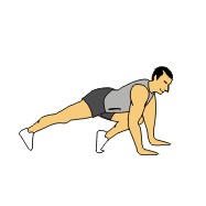 大家动作保持直立,膝盖微微弯曲,之后原地下蹲,手掌放在地面,身体重心移到双手方向,接着保持下背平直,双脚在双手碰地的时候,往后伸或滑到后方,摆出伏地挺身最高位置的姿势,双手在地上扭紧,臀部以及腹部要夹紧,胸部往下沉的时候,手肘要紧贴身体,肩膀和手腕上下对齐;