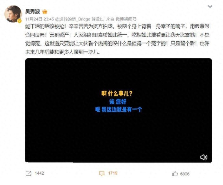 吴秀波破产风波:被人设局骗至4.66亿执行,他是如何回应的?