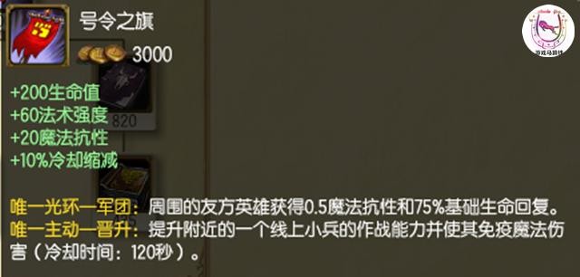 总结:这就是LOL中最脏的套路,只需要队伍里有两个人出号令之旗就可以实施了!LOL终究还是一个推塔的游戏,杀人再多,装备再好,基地一倒还是要输。因此学会这个套路,想赢比赛还是很简单的!那么你出过这两件装备吗?是不是觉得号令之旗非常的强呢?