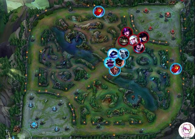 很简单,有了团队有了两件号令之旗后,就可以直接抱团逼中了。5人齐聚在中路,最好不是劣势局,而且队伍有先反手团控比较好,这样可以威慑对面不敢强开。图中给出的是拥有石头人的强推阵容,加上狗熊,布隆和泽拉斯的点控,一般对手是不敢强开的。