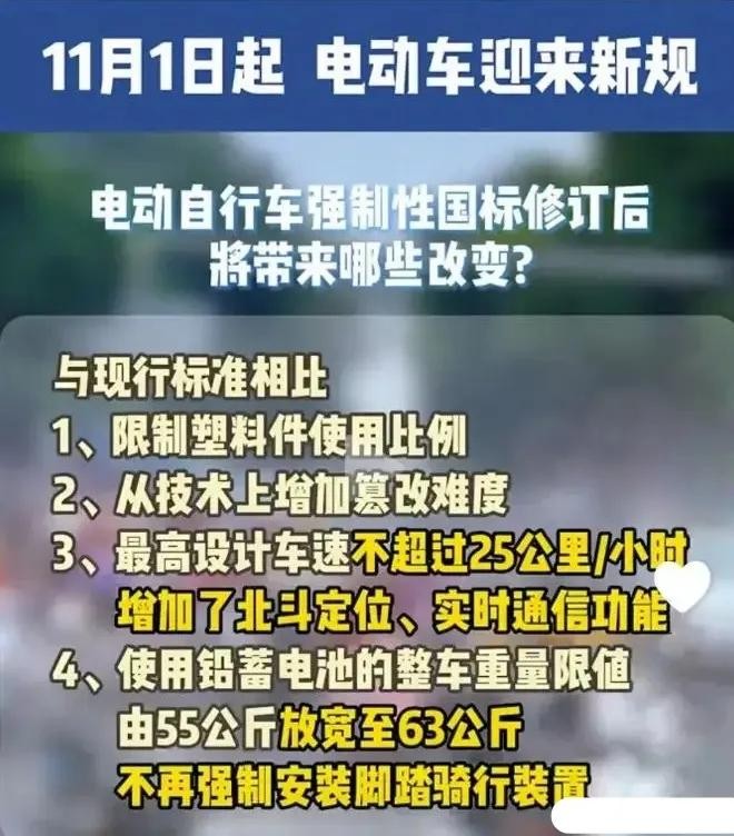 11月1日起,电动车领域将迎来新规,这一系列新规是在电动自行车强制性国标修订后出台的,它将给整个电动车行业和使用者带来深刻的变化。已经进入了11月份,这些新规车主需要了解,以免上路被罚。