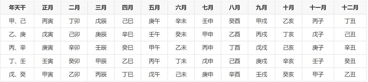 甲己之年丙作首,乙庚之岁戊为头;