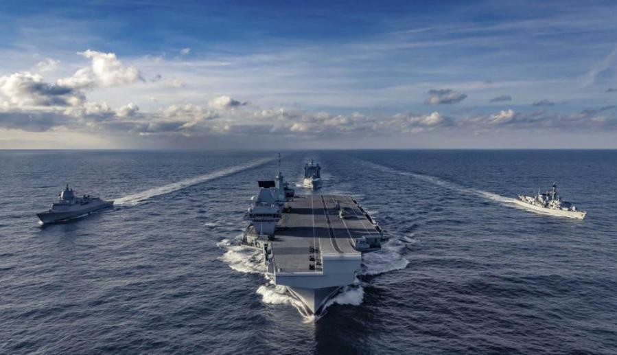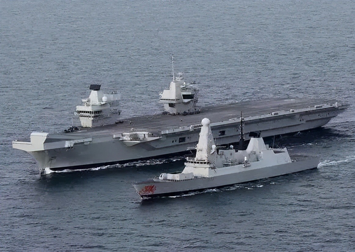 (“伊丽莎白女王”号航母横渡大西洋,去美国接收舰载机,而英军只能派遣1艘45型驱逐舰、1艘23型护卫舰和1艘补给舰组成舰队为其护航,这样的舰队规模甚至扛不住1艘052D型驱逐舰的“饱和打击”)