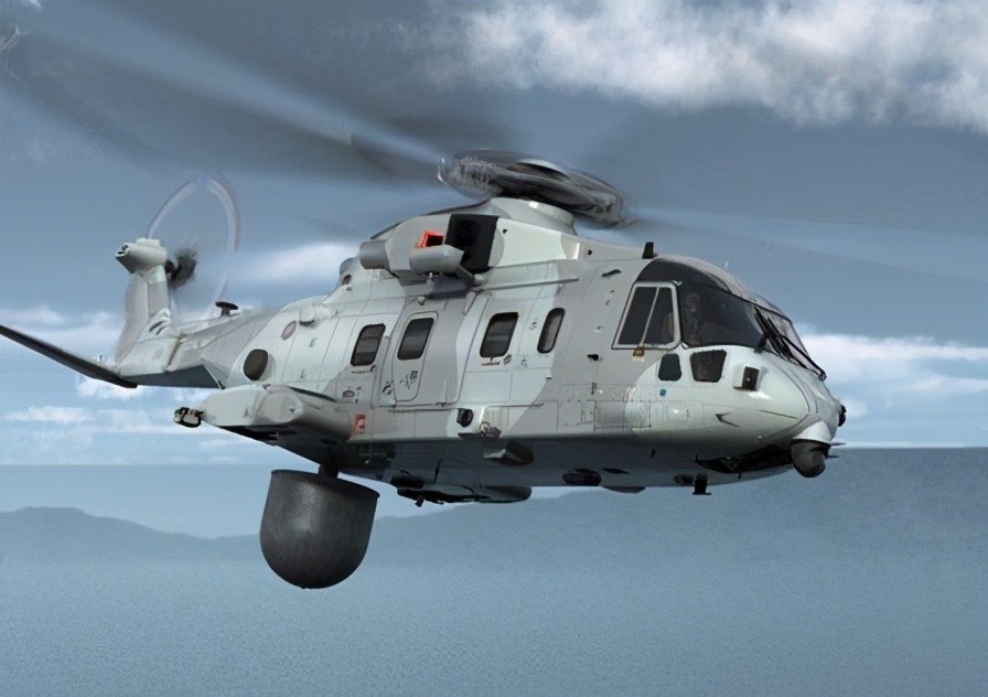 (携带预警雷达的MASC预警直升机,该机用EH-101“灰背隼”作为基本型,并安装了大型搜索雷达,性能优于俄制卡-31预警直升机)