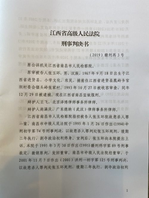 一审审理期间,张玉环坚称自己无罪,有罪供述是受到刑讯逼供作出的。1995年1月26日,南昌中院一审判处张玉环死刑,缓期两年执行,张玉环不服上诉。1995年3月30日,江西省高级人民法院撤销原判,发回重审。2001年11月7日,南昌中院再次以故意杀人罪判决张玉环死刑,缓期两年执行。张玉环仍不服,再次提出上诉。2001年11月28日,江西省高级人民法院驳回其上诉,维持并核准原判。二审宣判后,张玉环一直喊冤,坚称自己没有杀人。接受华商报记者采访时,张玉环的哥哥张民强介绍,服刑期间,张玉环每周都会写一封信申冤,前后写了一千多封。2018年6月20日,江西省高级人民法院决定对张玉环案立案复查。2019年3月1日,江西高院决定再审此案。
