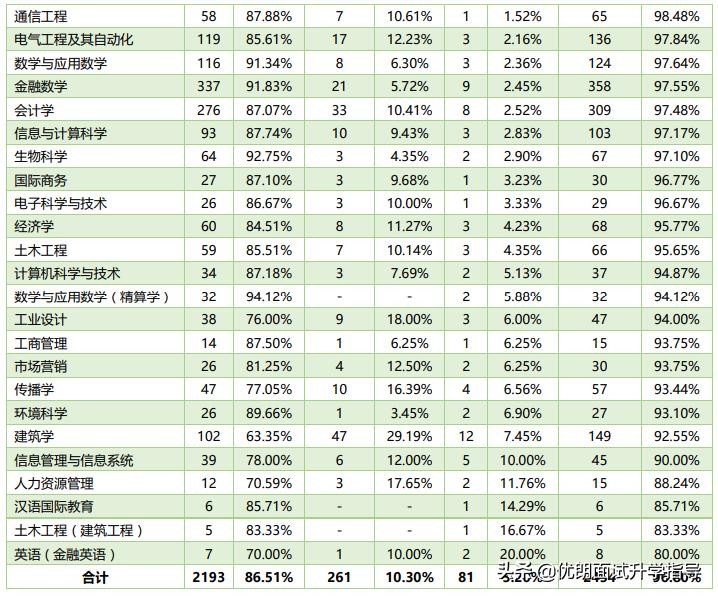 西浦2019届大陆本科毕业生共2535人,升学与就业人数分别为2193、261。按照(升学+实际就业人数)/毕业生人数,可算出2019届西浦毕业生总体就业率为96.80%。