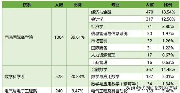 西浦2019届本科毕业生分布在14个院系、33个专业,选择“西浦国际商学院(1004人)、数学科学系(528人)、电气与电子工程系(240人)”三大院系的人数居多,但毕业生人数排名前三的专业为“经济与金融、金融数学、会计学”。