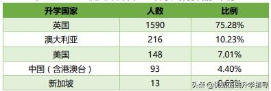 近三年来,该校本科毕业生升学国家或地区呈现多元化态势——英国排名升学国家榜首;澳大利亚位居第二;美国位居第三;新加坡、荷兰、意大利等其他国家升学比例逐步上升。