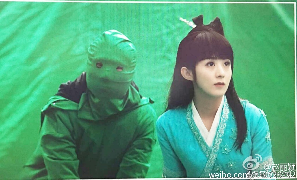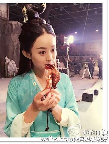 认真读剧本背台词的赵丽颖&调皮的小赵