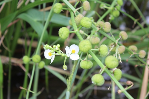 我图片库中有一种植物,生长在河滩,与香蒲(蔺子)(雄花粉叫蒲黄)生长在一起。发现它的时候并不认识它,后来听专家说它叫慈姑。南方的朋友可能见的很多,我们这里确实很少见到!