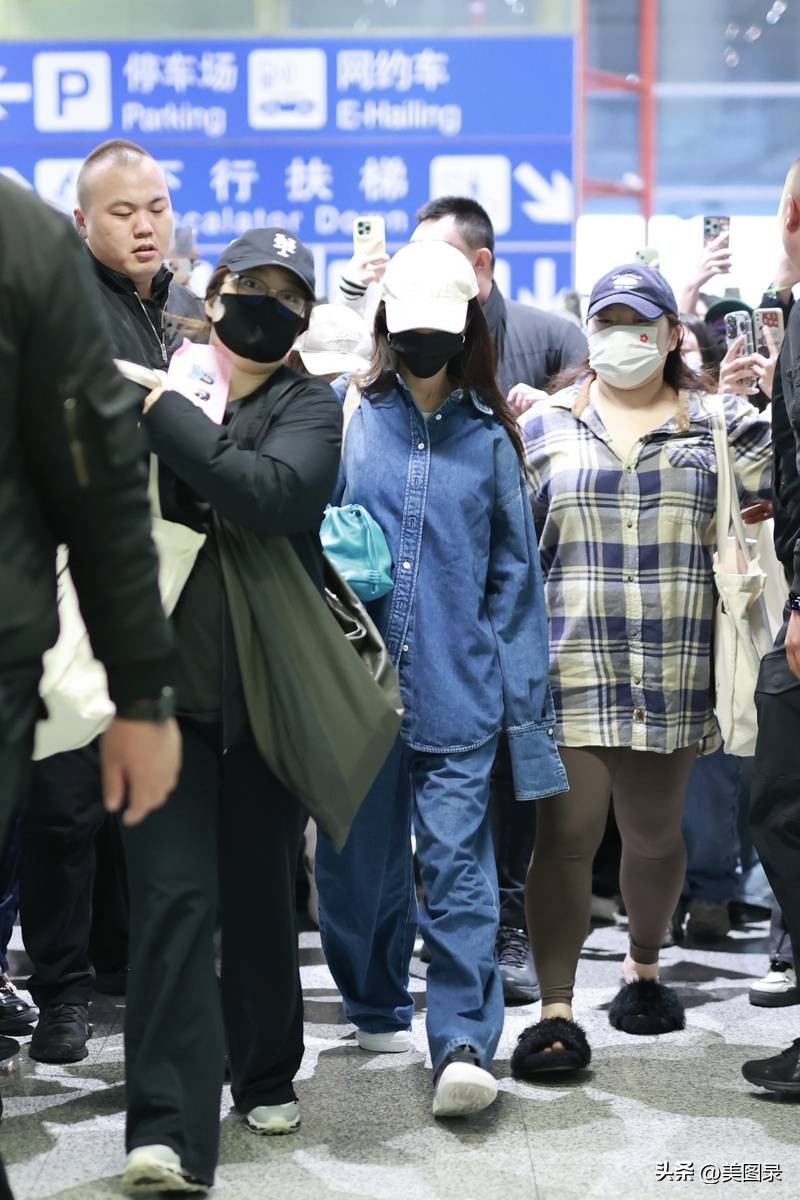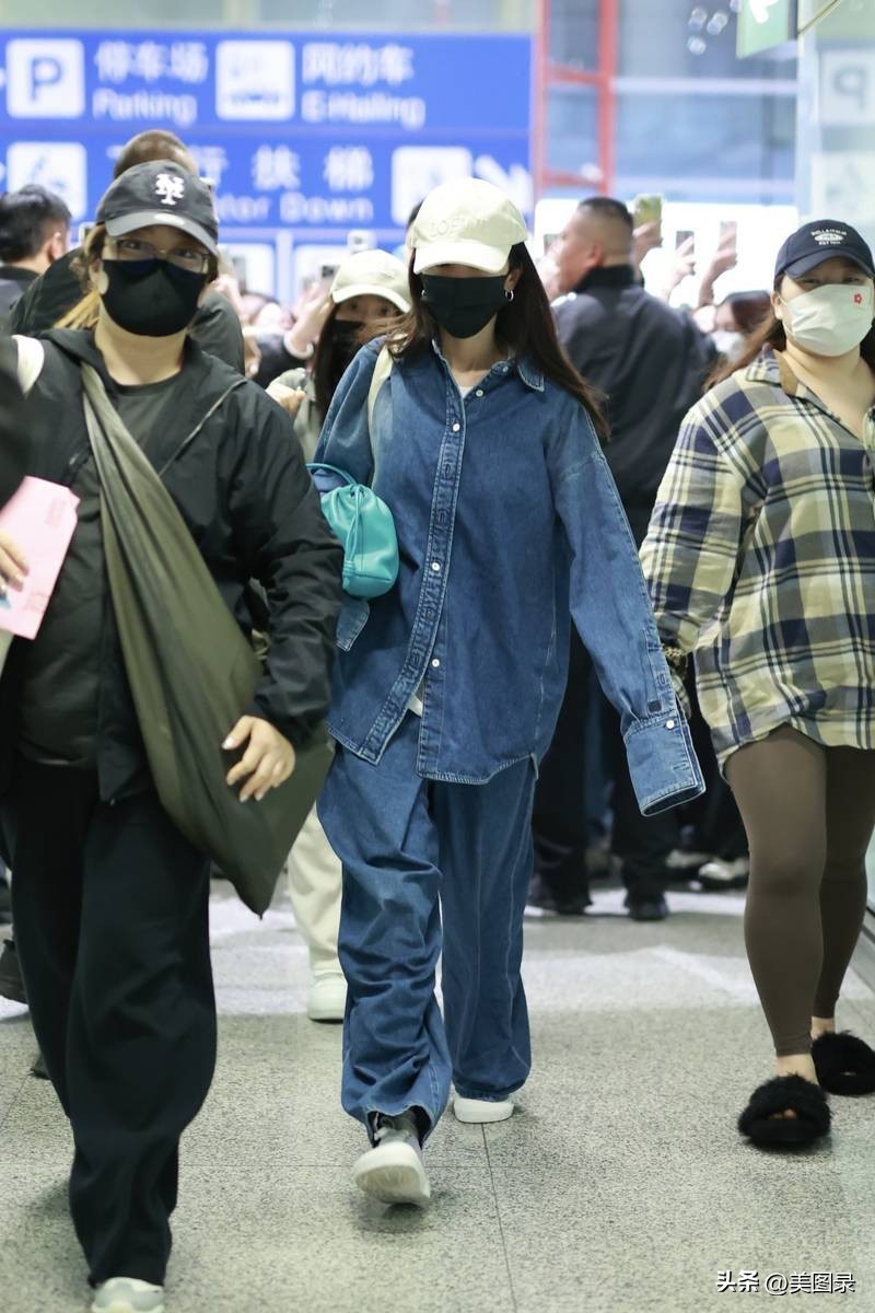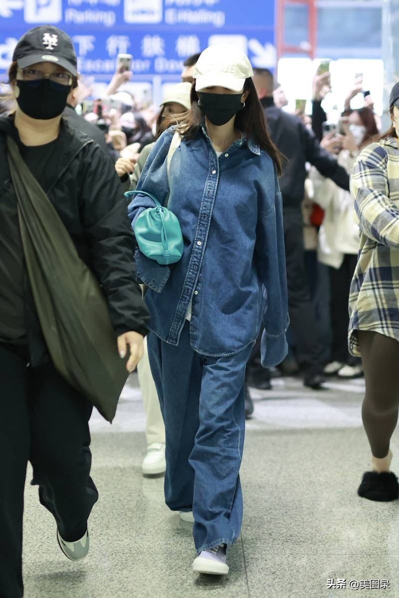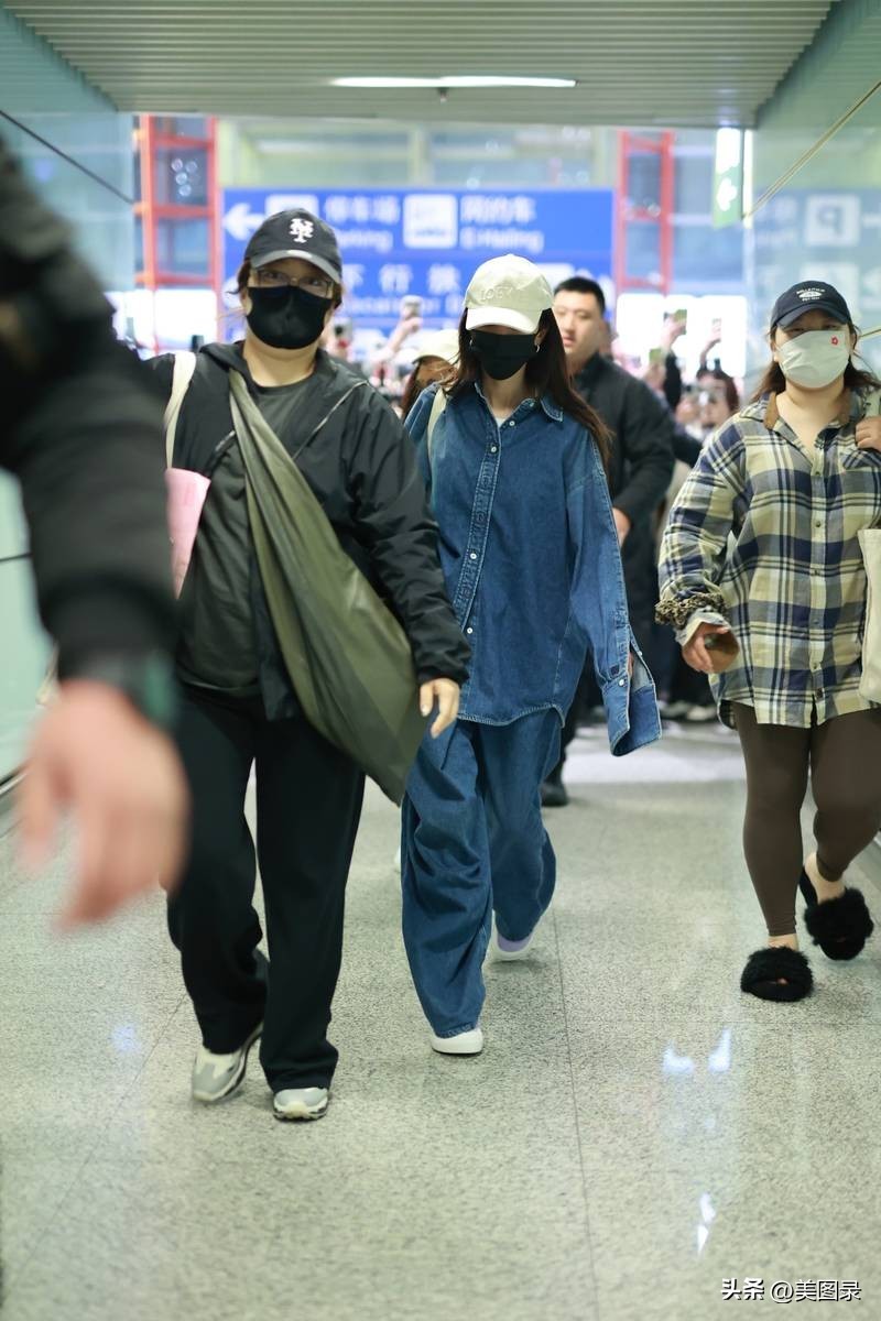 杨幂结束时装周行程 穿一身牛仔装抵达首都机场