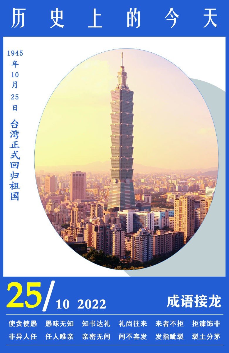 1945年10月25日,台湾正式回归祖国的怀抱!祖国为两岸统一做好了充分的准备工作,为了更好的发展,采取了“一国两制”。