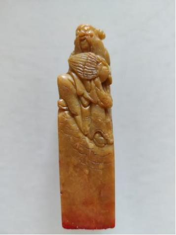 通过考证,该印章制作时间是1946年7月9日,由中国著名国画艺术家谢孝思(字仲谋)先生所刻。图章石材选用巴林石,上方所刻人物为八仙中手拿扇子的钟汉离。