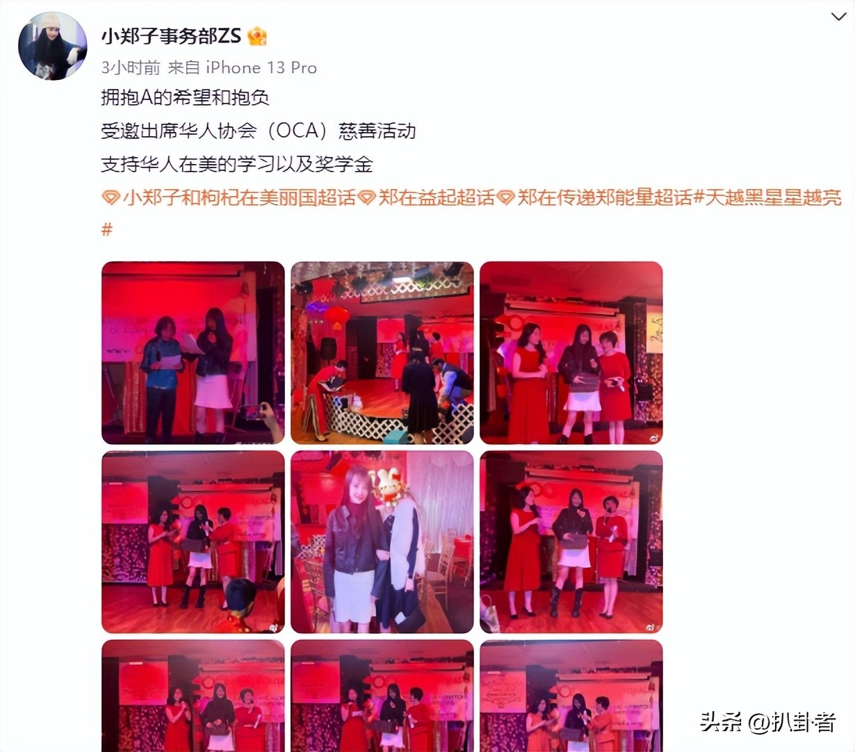 能够受邀出席这样的慈善活动,而且是与奖学金相关的慈善项目,可见郑爽在当地华人圈还是有一定的威信的!