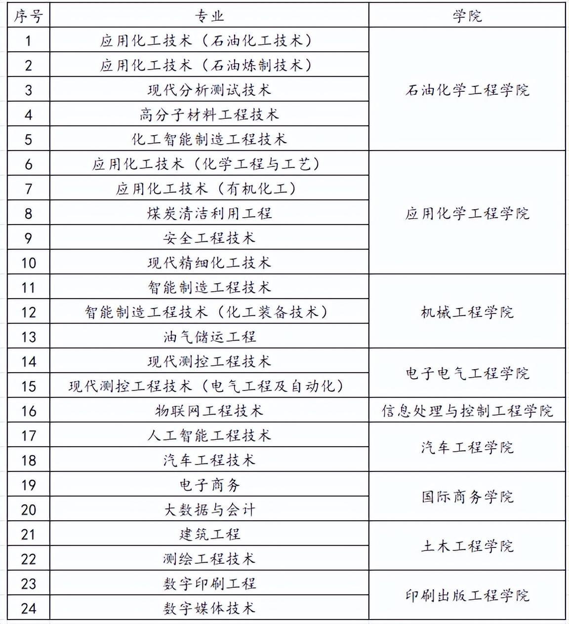 学校应用化工技术有应用化工技术(石油化工技术)、应用化工技术(石油炼制技术)、应用化工技术(化学工程与工艺)和应用化工技术(有机化工)四个方向,分属两个学院;